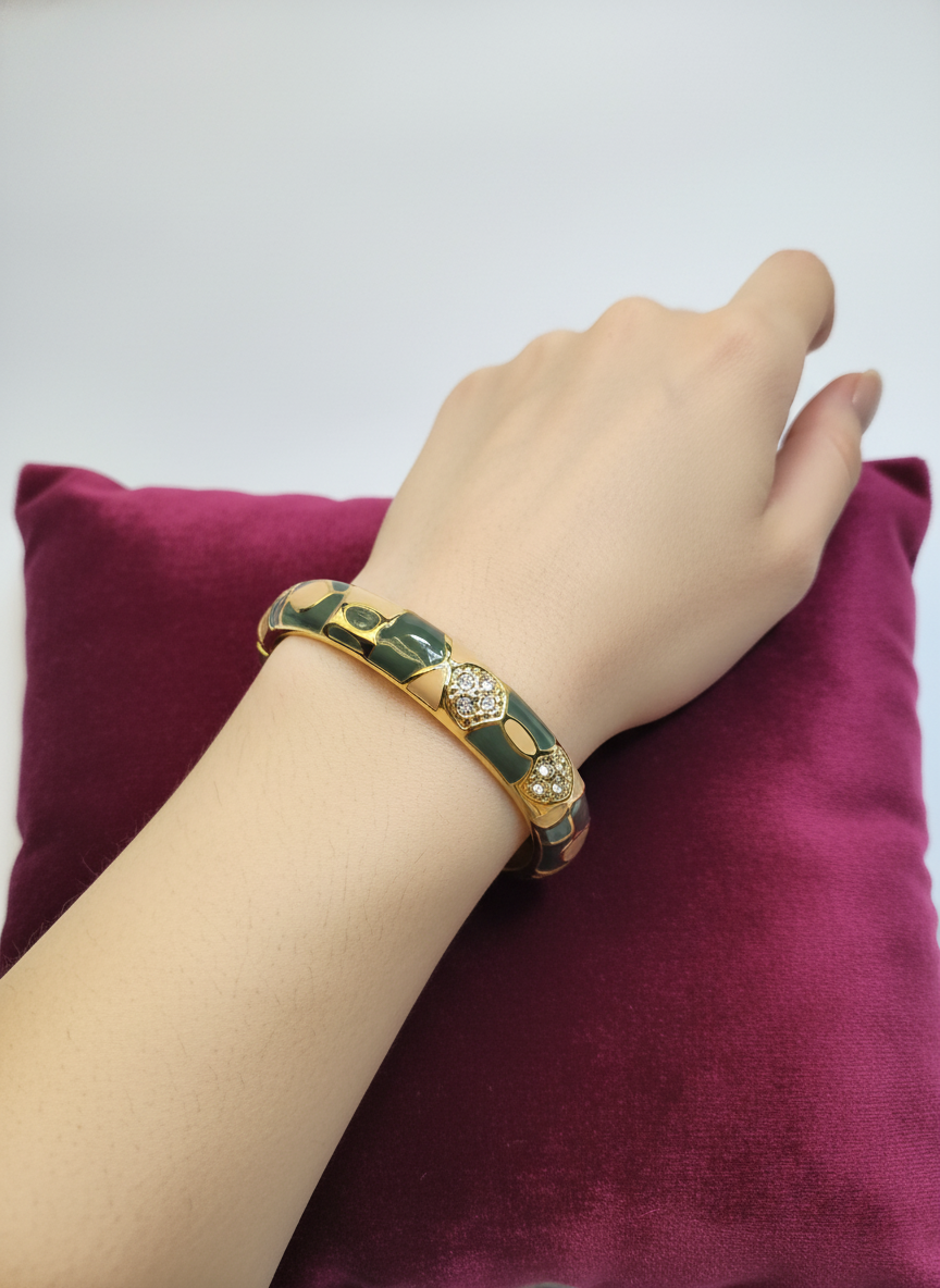 A Meenakari Kada is a beautifully crafted traditional bangle adorned with intricate enamel work. Known for its vibrant colors and detailed designs, it combines artistry with elegance, making it a timeless accessory for festive and cultural occasions